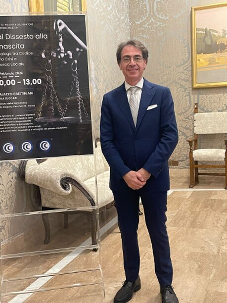 Il convegno "Dal dissesto alla rinascita: il dialogo tra Codice della Crisi e Finanza Sociale" si è tenuto lunedì 16 febbraio 2026 a Roma, presso la prestigiosa Sala Zuccari di Palazzo Giustiniani.